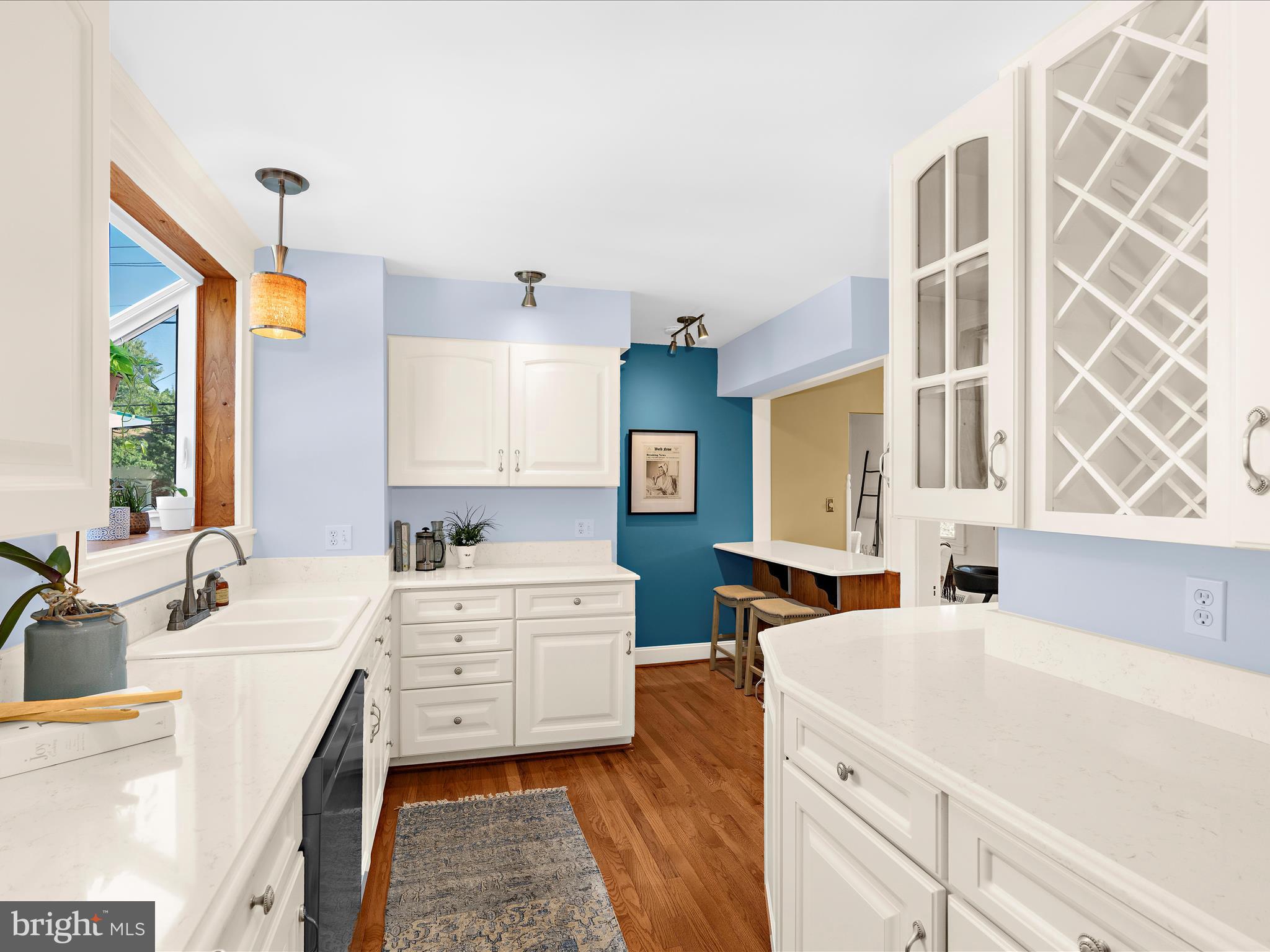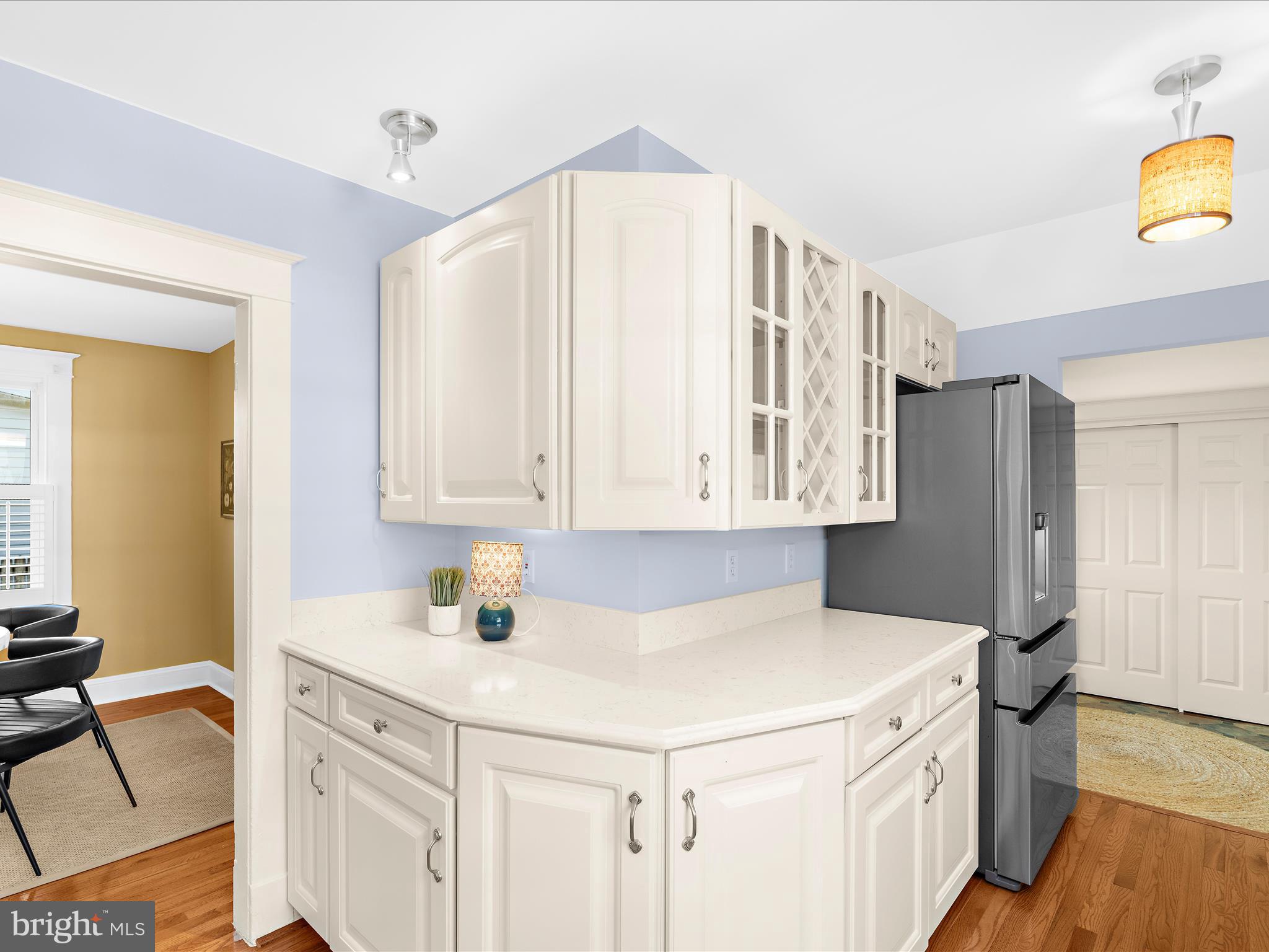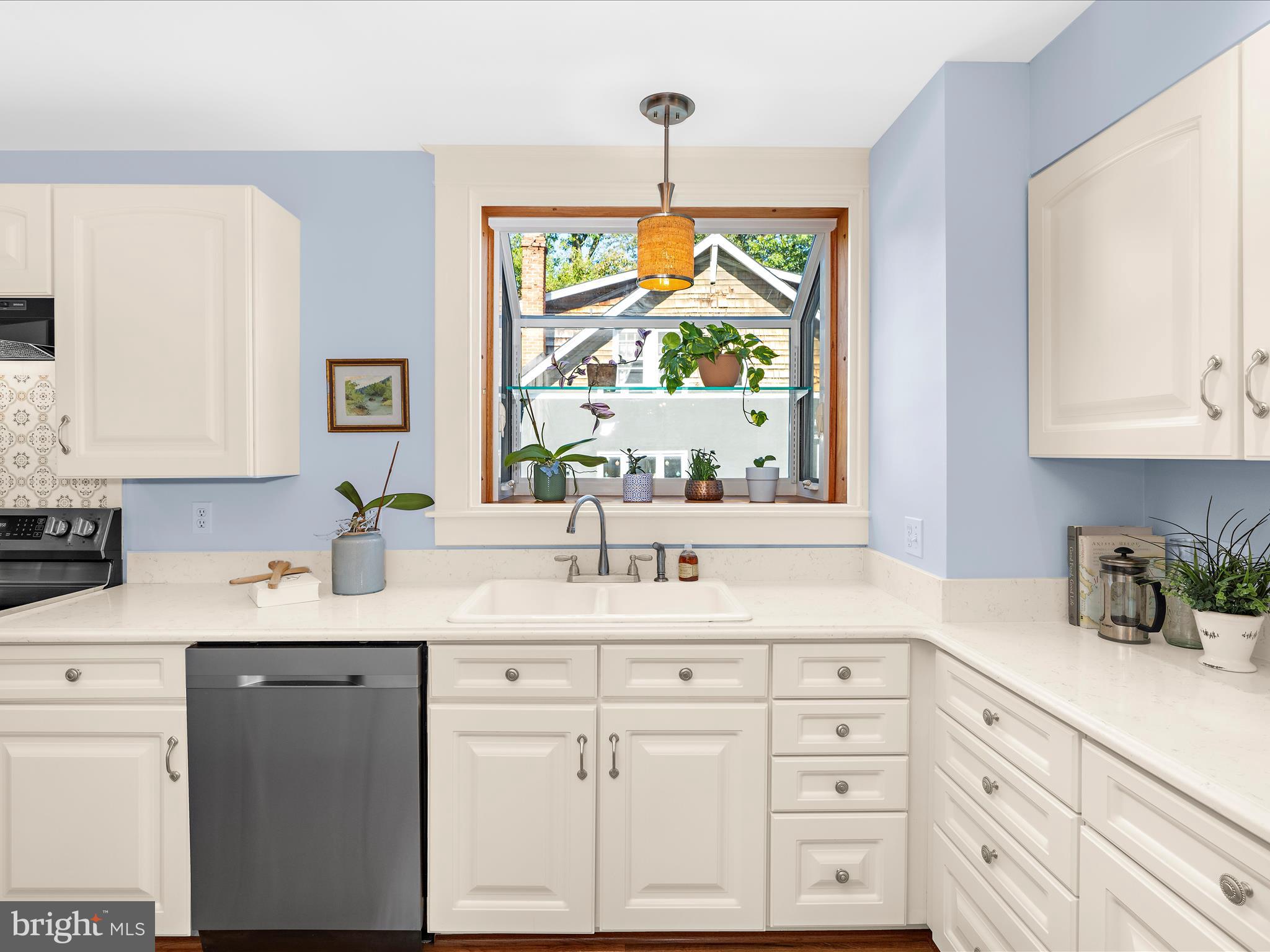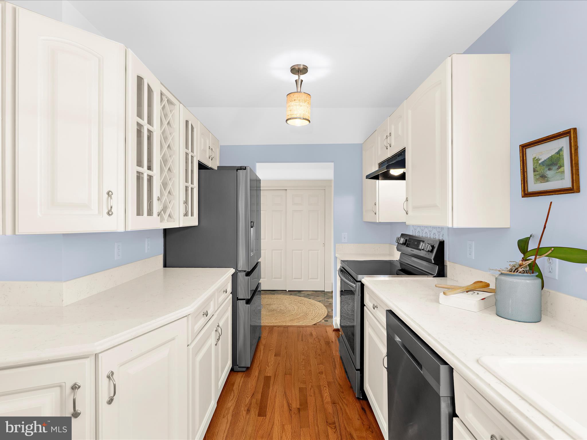 The kitchen has been updated with modern amenities, offering lots of cabinet space, upgraded countertops, and stainless steel appliances.